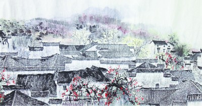 在技法上不勾线,大笔下去,运用“浅降”等技法,好像从黑白变成了彩色的,很像是油画,并且有空中鸟瞰的高远方式,更有大气魄。