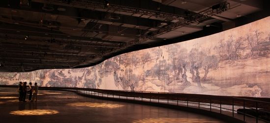 动态版《清明上河图》将北宋张择端的画作放大了30倍,用12台高清投影机投射在曲线形屏幕上。